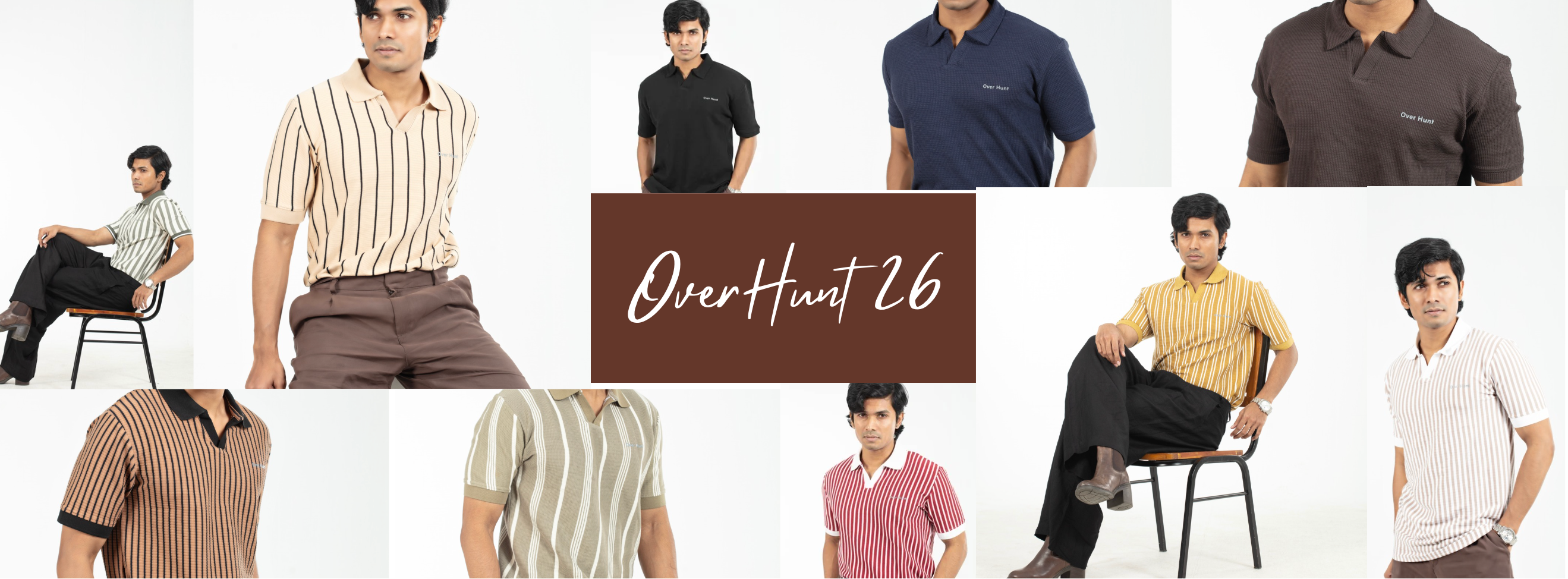 Brown & Black – V-neck Stripe Polo Shirt